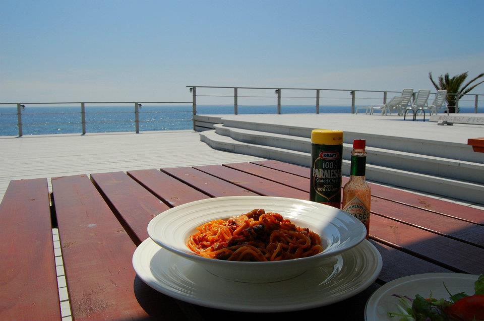 開放的な広いデックの前には海が広がり、潮風に吹かれのんびーりしていると日本にいるのを忘れてしまいそう。。。