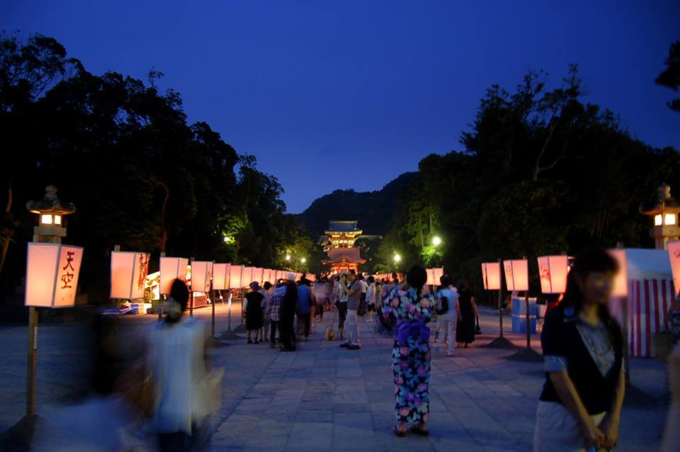 八幡宮の参道では夏の風物詩であるぼんぼり祭りが開催中♪