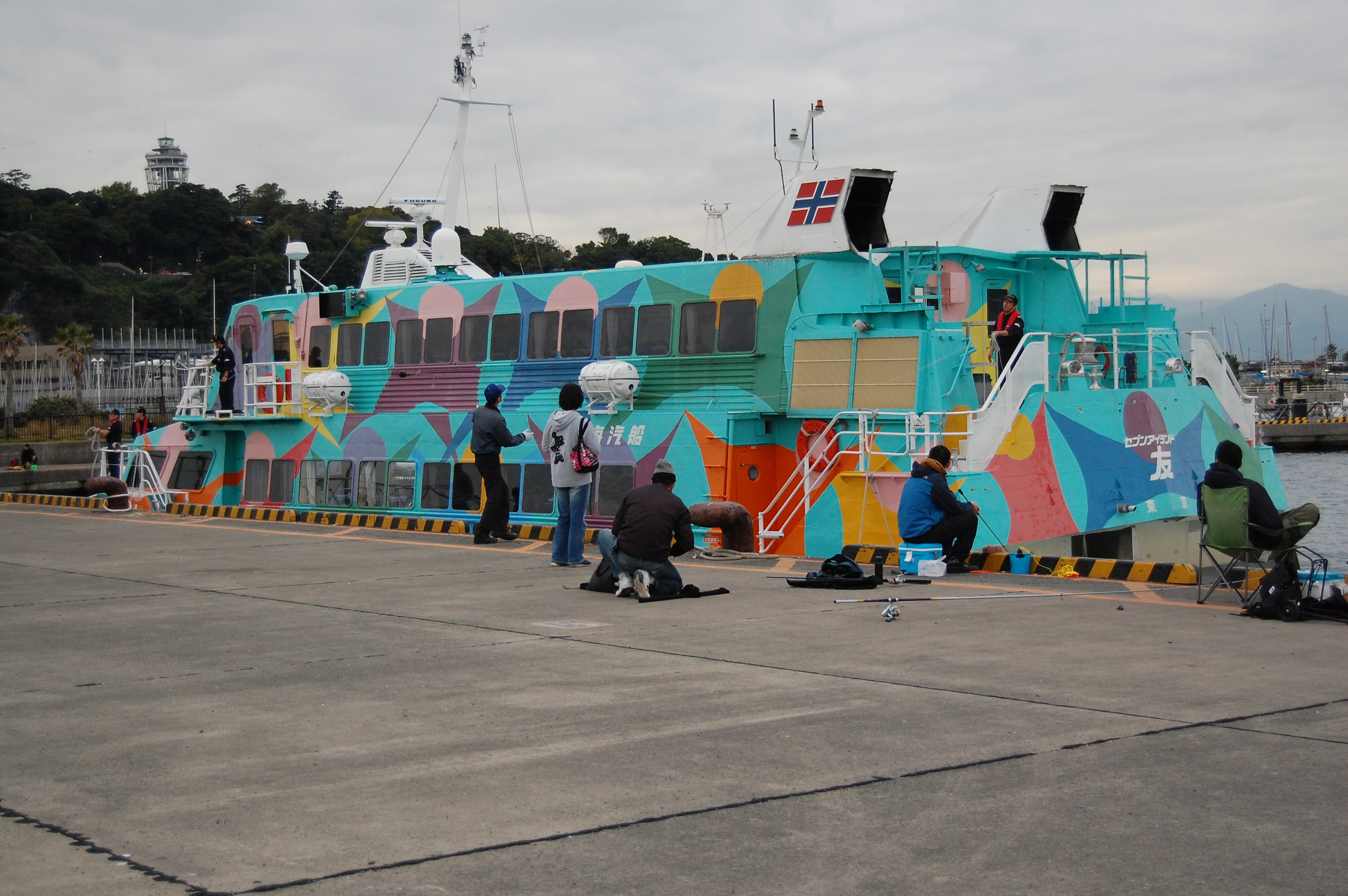 普段は東京まで行かないと乗ることができない伊豆大島・神津島行きの船が今日と明日、江の島のヨットハーバーから発着します。