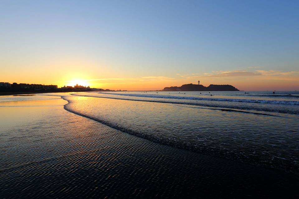 江の島灯台から昇る朝日を見るには少し西よりにある茅ヶ崎方面へ行くと見えそうです。