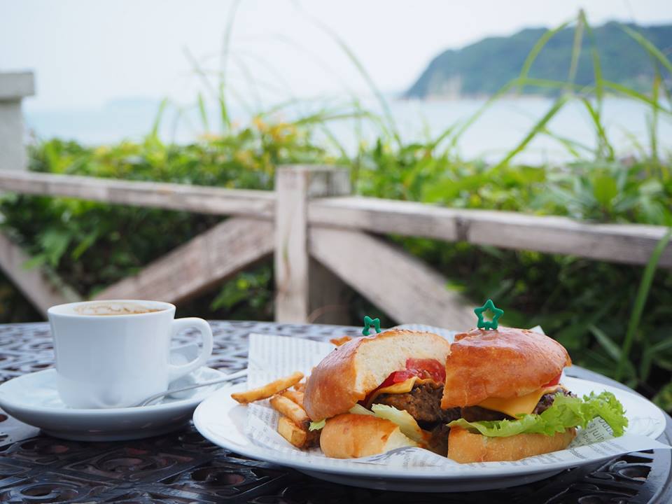 外には逗子海岸が目の前に広がるテラス席もあり、わんちゃんもOK
