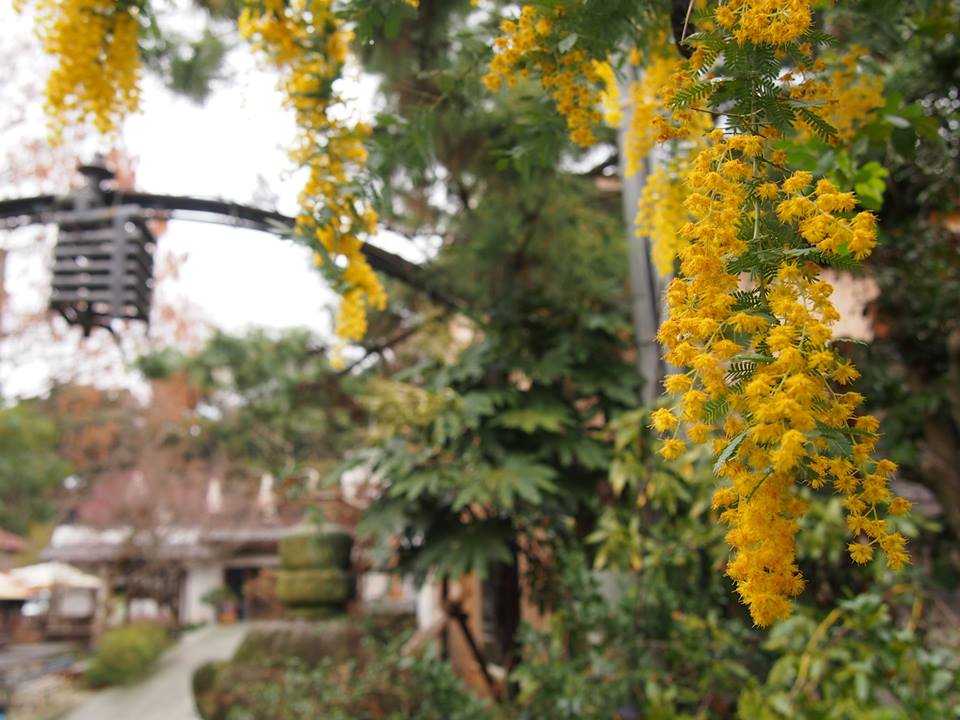 しっとり濡れたミモザのトンネルをくぐっていきます♪