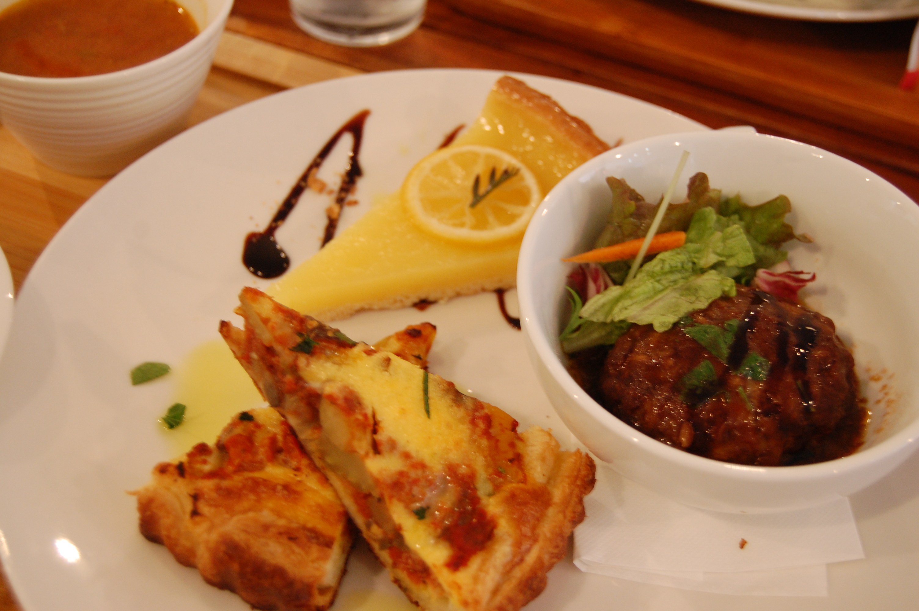 煮込みハンバーグと野菜キッシュとレモンタルトをチョイスしました。