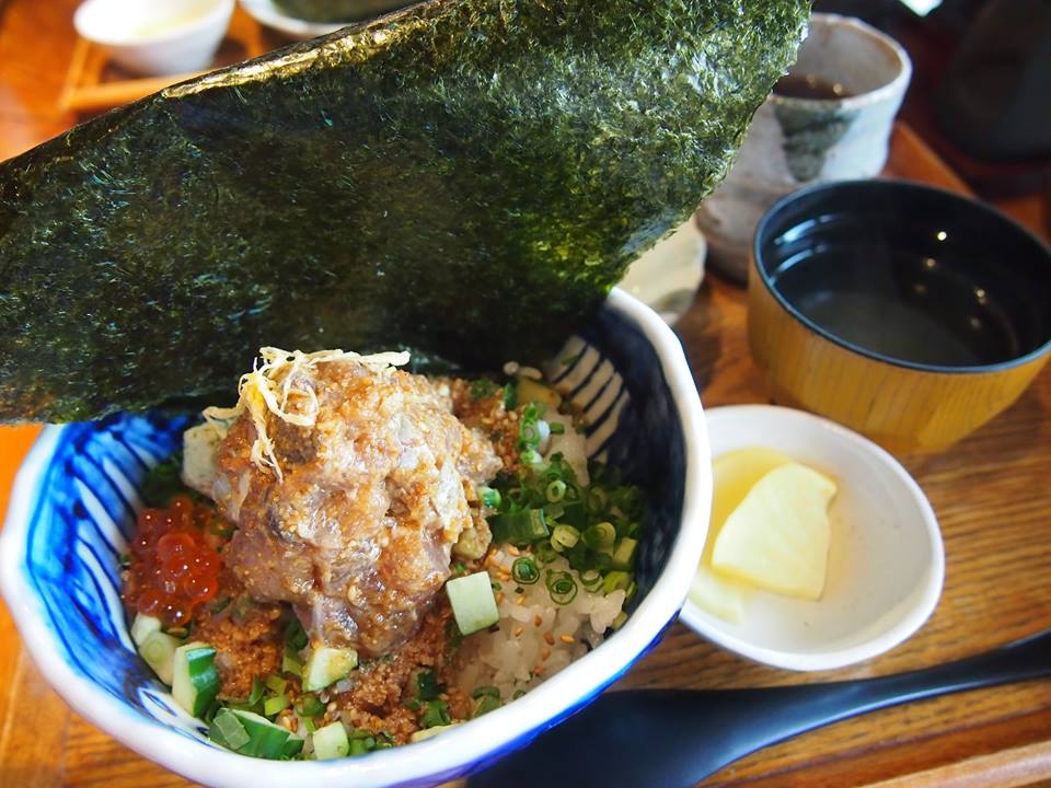海苔をまぶして食べても良し、巻いて食べてもよし、最後にはセットで提供される漁師汁をかけて食べても良し、一丼でいくつもの味を楽しめるまかない丼。
