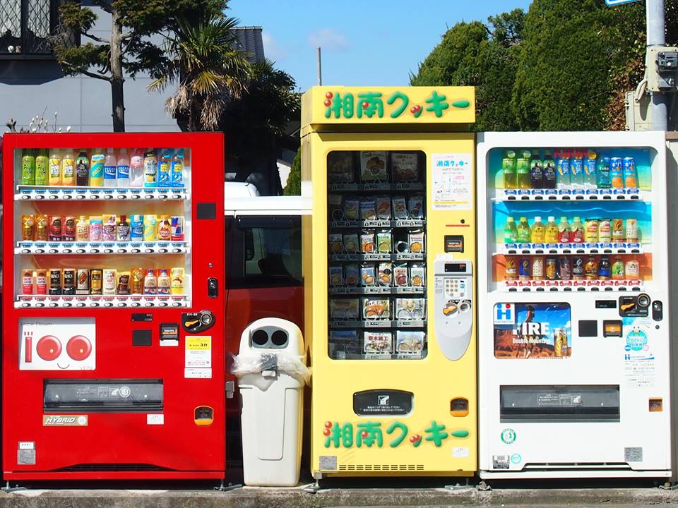 水分補給に気を使う季節です。飲み物の自動販売機を探していると一緒に並んでいる黄色い販売機。