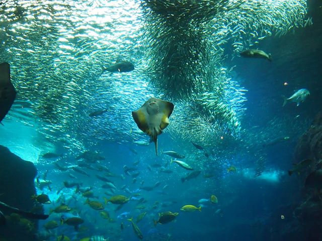 新江ノ島水族館の相模湾大水槽のイワシの群れはいつまで見ていても飽きません。