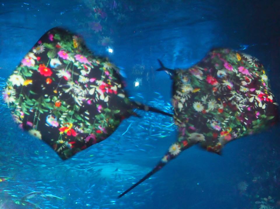特にエイのお腹は見事な花模様に、相模湾ゾーン は光の球体に囲まれ刺激に依る色や音の変化が楽しめます♪