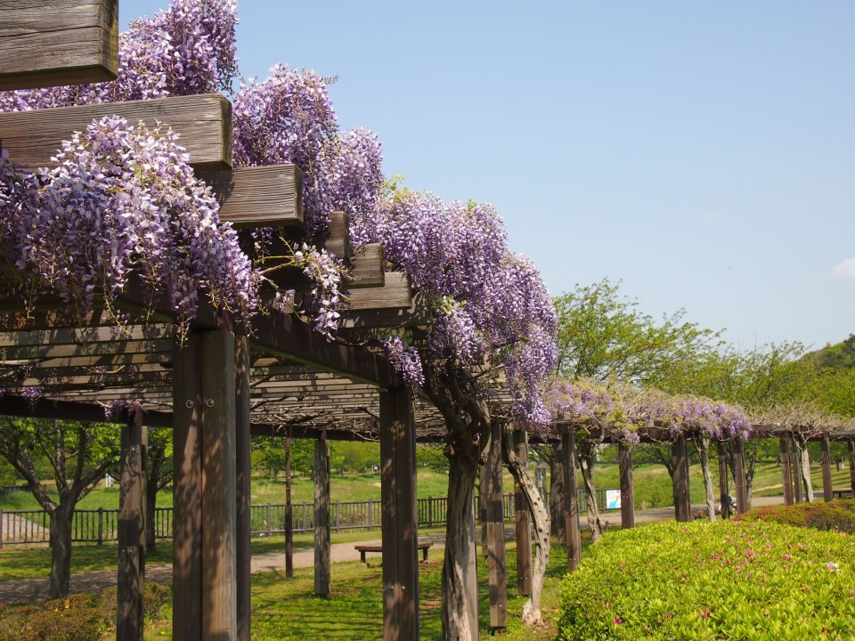 お花シリーズ。今日は藤棚が見頃の親水公園です。