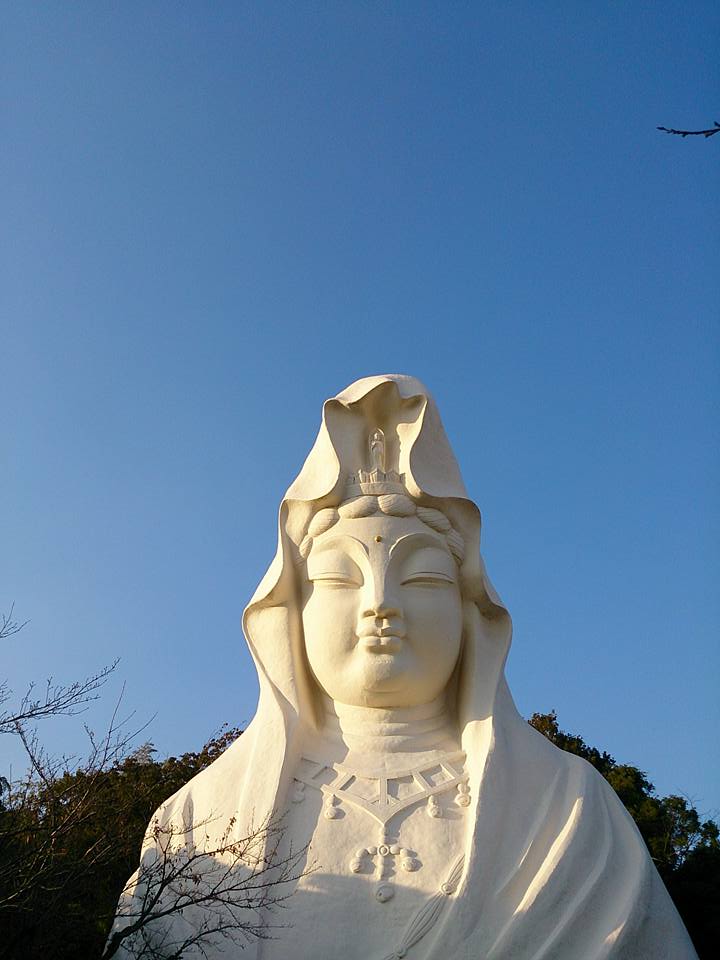 近くて遠い観音様、青空で午後の陽射しを受け神々しく輝いていました!