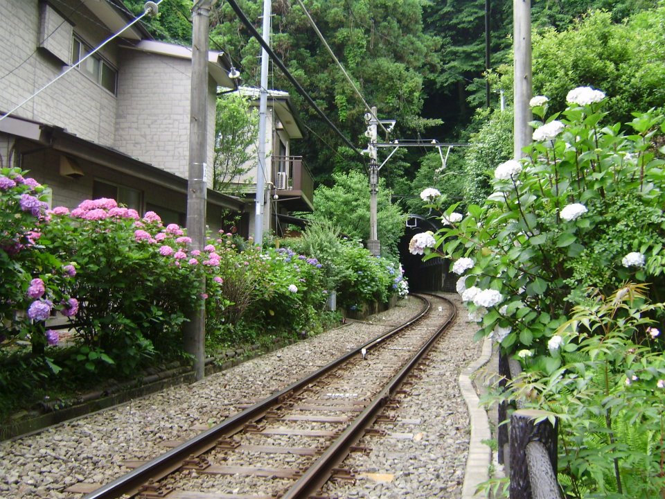 成就院から極楽寺の切り通しを下り、長谷に抜ける途中に御霊神社はあります。江の電の踏切の向こうに鳥居がある風景は、ドラマでもお馴染みです。