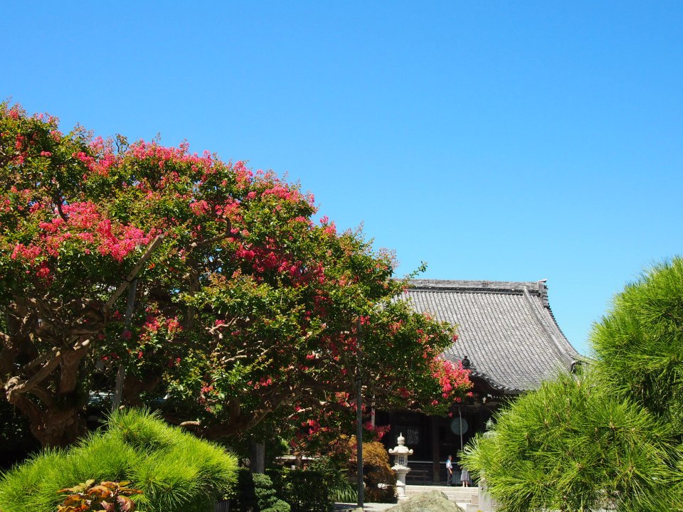 鎌倉駅を出て若宮大路を渡ったところにある日蓮宗の本覚寺。境内には大きな百日紅があります。いつもより少し花が少ないような気がしますが今が見頃です。