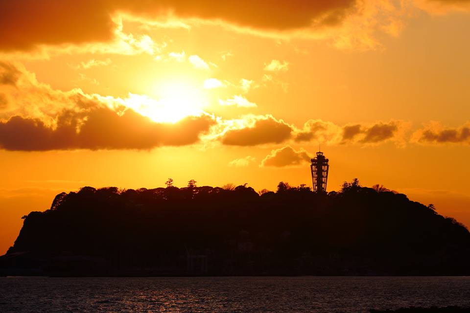 江ノ島シーキャンドルにお日様が炎を点火! お日様が近付くのか、地球が回るのか・・・(^^)