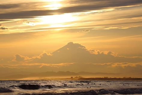 明日以降、ダイヤモンド富士が見えるスポットとしては平塚、葉山、と少しずつずれていきますが、鵠沼海岸と同じころ、葉山方面からは海と富士山の間に雲海ができて、富士山が中に浮いているように見えたそう!