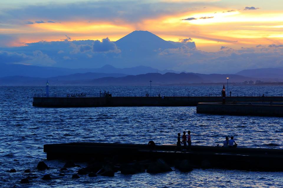 このところ夕暮れになると富士山が見えます。