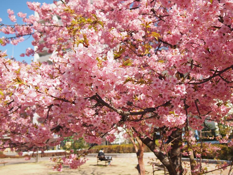 藤沢市民会館の近くの河津桜が見ごろを迎えました♪