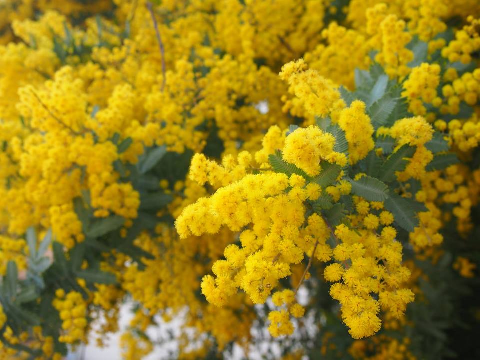 鵠沼の住宅地ではこの春雨の中、ミモザが見ごろを迎えていますよ。