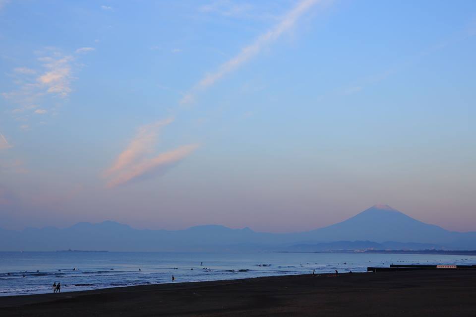 この時期の日の出時間は6時20分くらいですから、きっと朝日が昇る前から海に入って、だんだんと赤く照らされていく富士山を眺めながらのサーフィンなんでしょうね。
