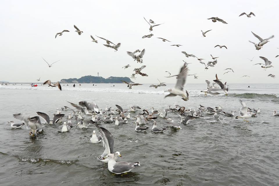 この時季鵠沼海岸にはたくさんの渡り鳥がいて、地引網のあとの小魚が目当てで乱舞しているんですね♪