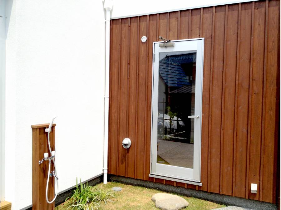 温水も出る!外シャワーで波乗りさんも、泥んこで遊んできた子も、ワンコも
