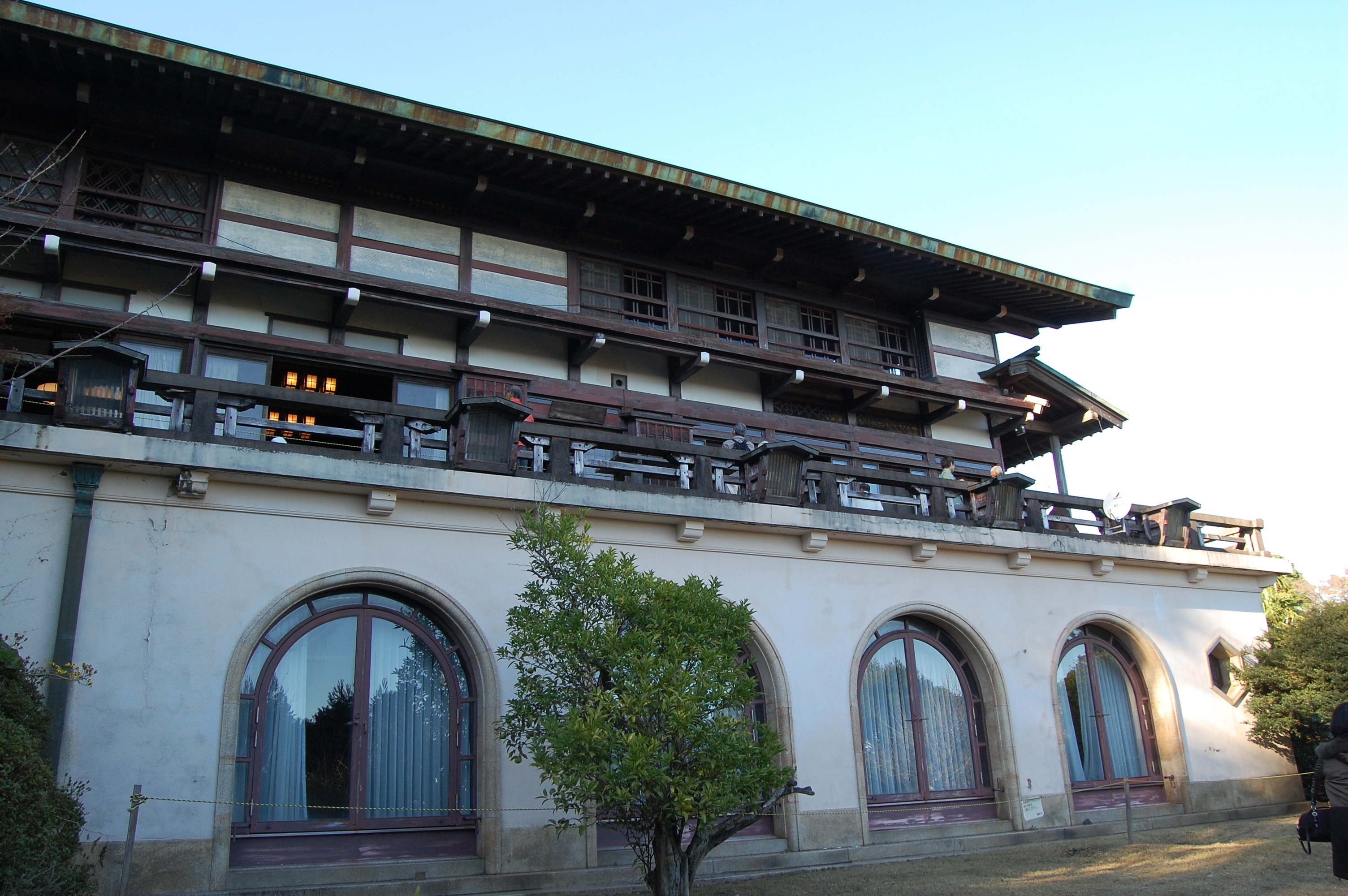 昭和9年に「わかもと製薬」の創業者長尾欽彌氏の別荘として飛騨高山の民家を移築・改築したもので、移築には日光東照宮の修復や明治神宮宝物殿、厳島神社宝物館の造営に携わった大江新太郎が顧問となっていました。
